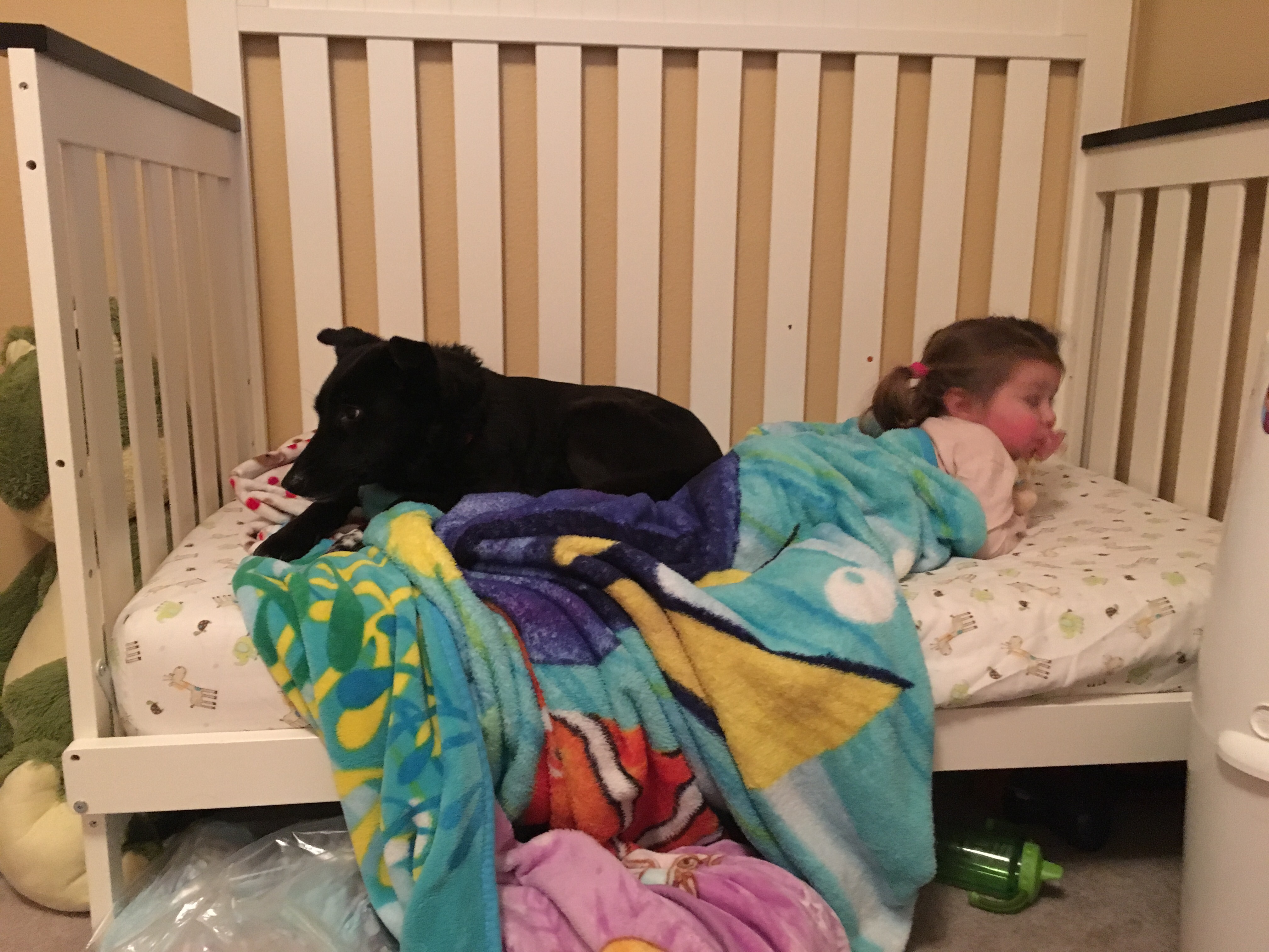 I am not entirely sure what happened here or how I feel about it but I know D and I discussed how R would probably end up sleeping in BB’s bed before too long (way back when she was a teeny tiny baby). R just decided she wanted to cuddle BB (and wake her up!)