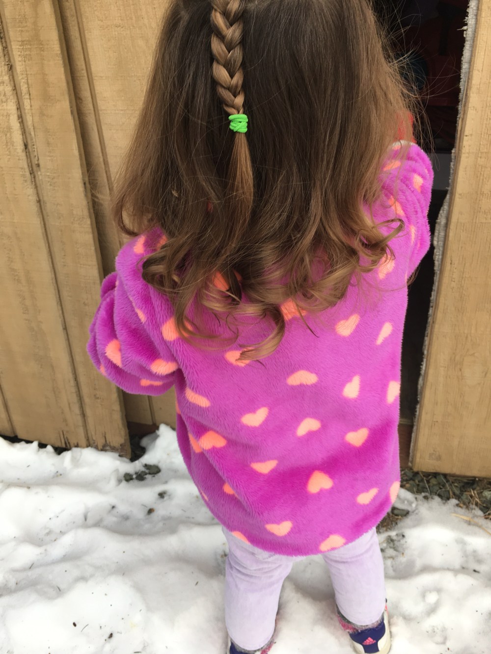 BB is so grown up!! If you didn’t know, I have stick straight hair, only after a year of living in Juneau where it is really humid has it started to get any indication of the tiniest wave. BB on the other hand has these beautiful curls that up until this week (after 2+ years of doing it wrong) did we figure out how to care for them best!