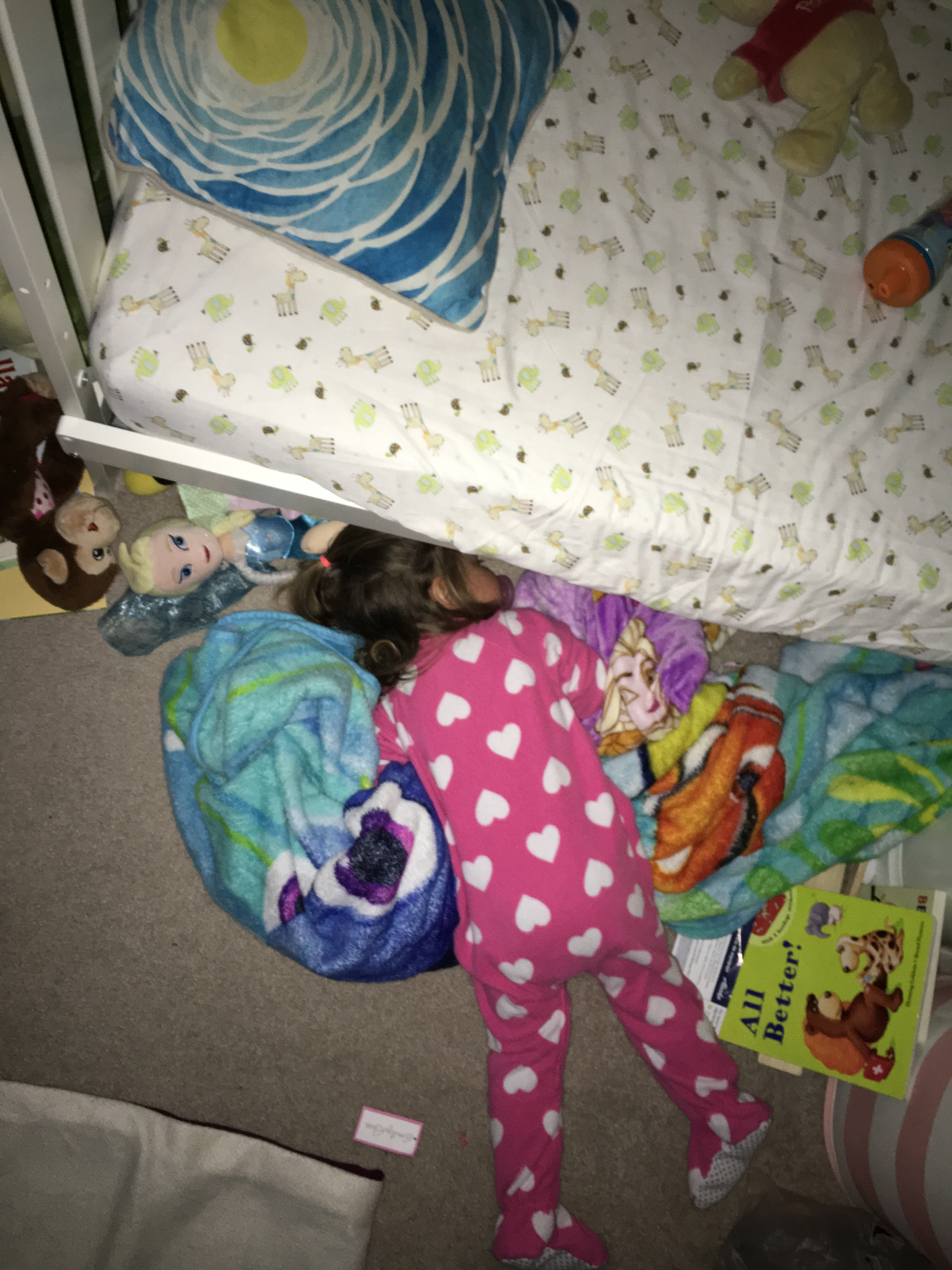 Sometimes in the middle of the night BB gets stuck, this is not the best of those times but I wanted a photo to remember how funny it is when I walk in and just her legs are sticking out from under her bed!