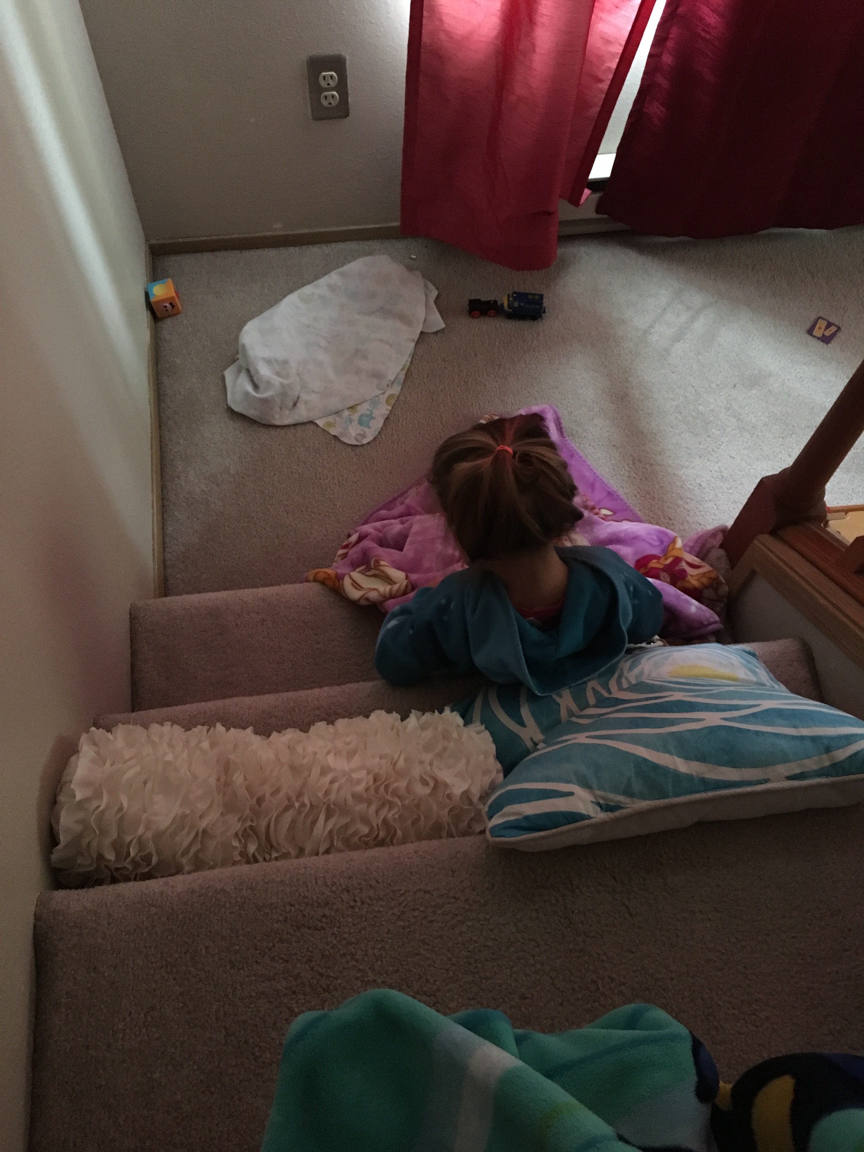 Saturday Afternoon we played on our stairs for probably an hour. BB would tuck us in and we played all sorts of pretend games. I love that BB’s imagination is so wild!