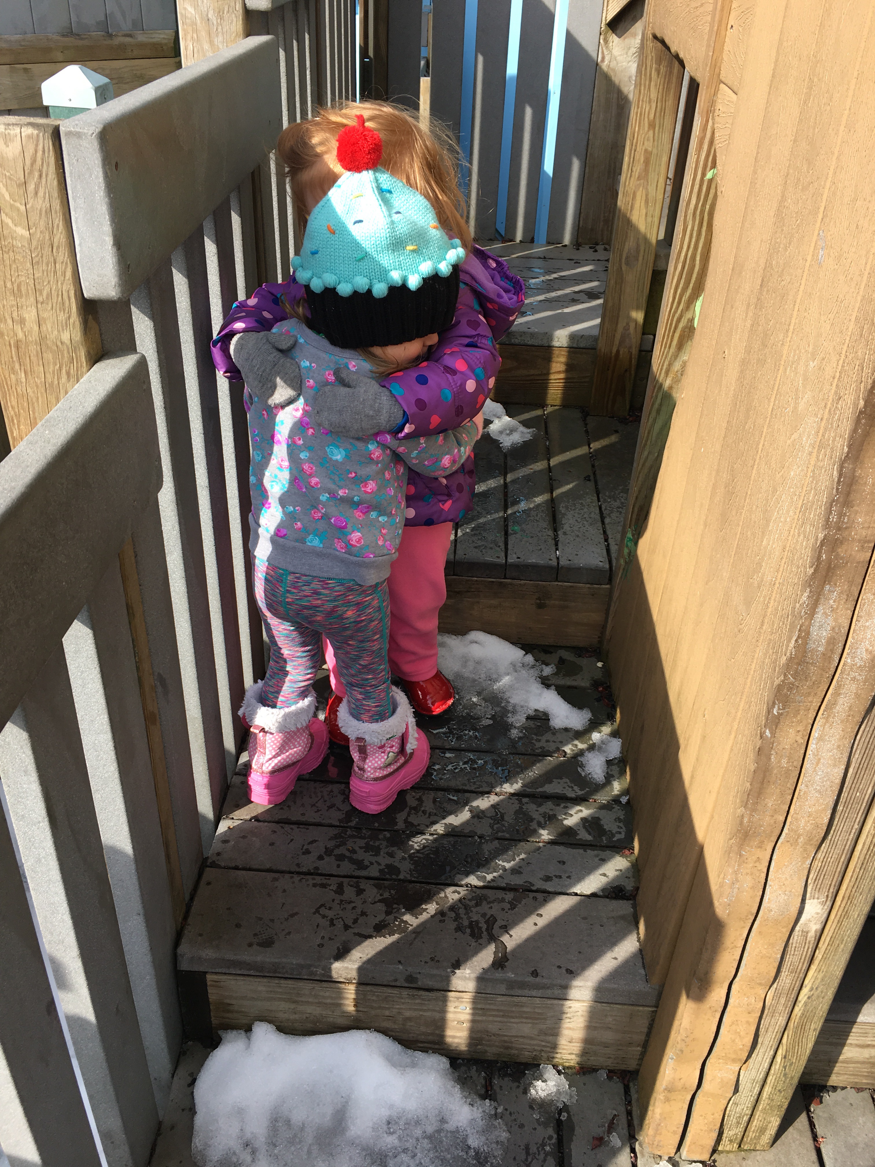 I love when BB is kind to her friends. this friend fell down and BB gave her the biggest hug to help her feel better. It was a very sweet moment!