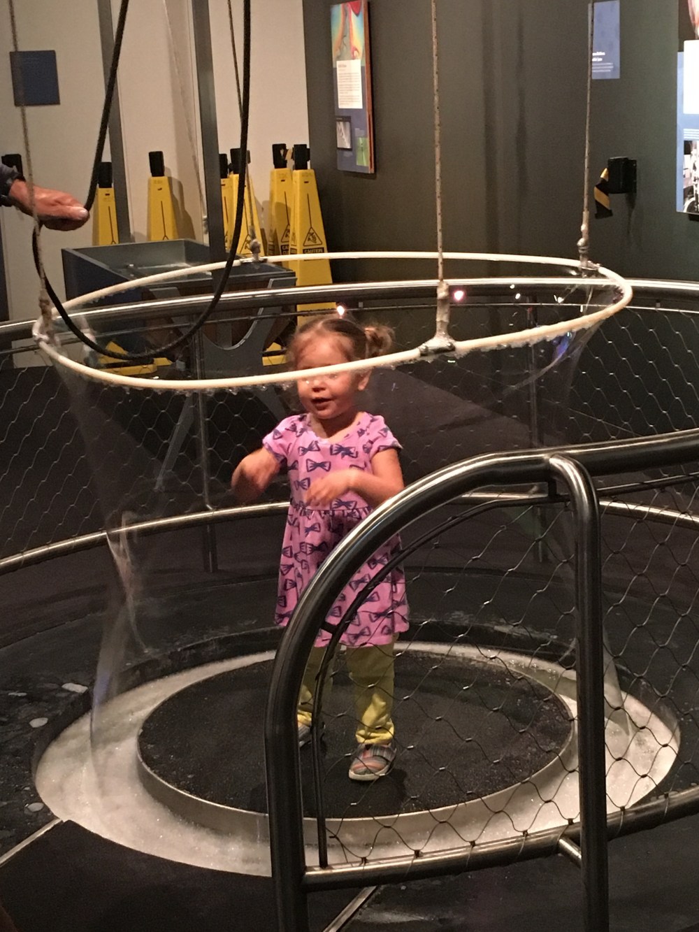 We went to a museum and they had a kids discovery area, BB touched a snake and blew a bubble over her head.