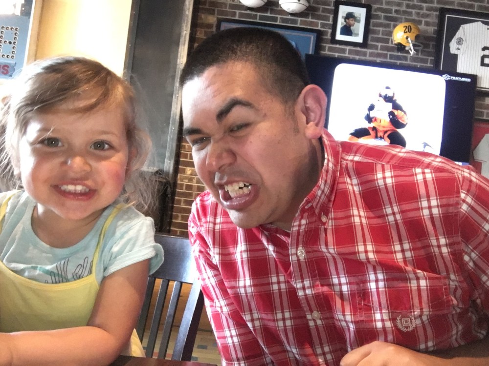 We took D out for dinner on fathers day even though he was gone most of the day. I would say he missed her but I am not sure that’s even close to how much he enjoys being with her.