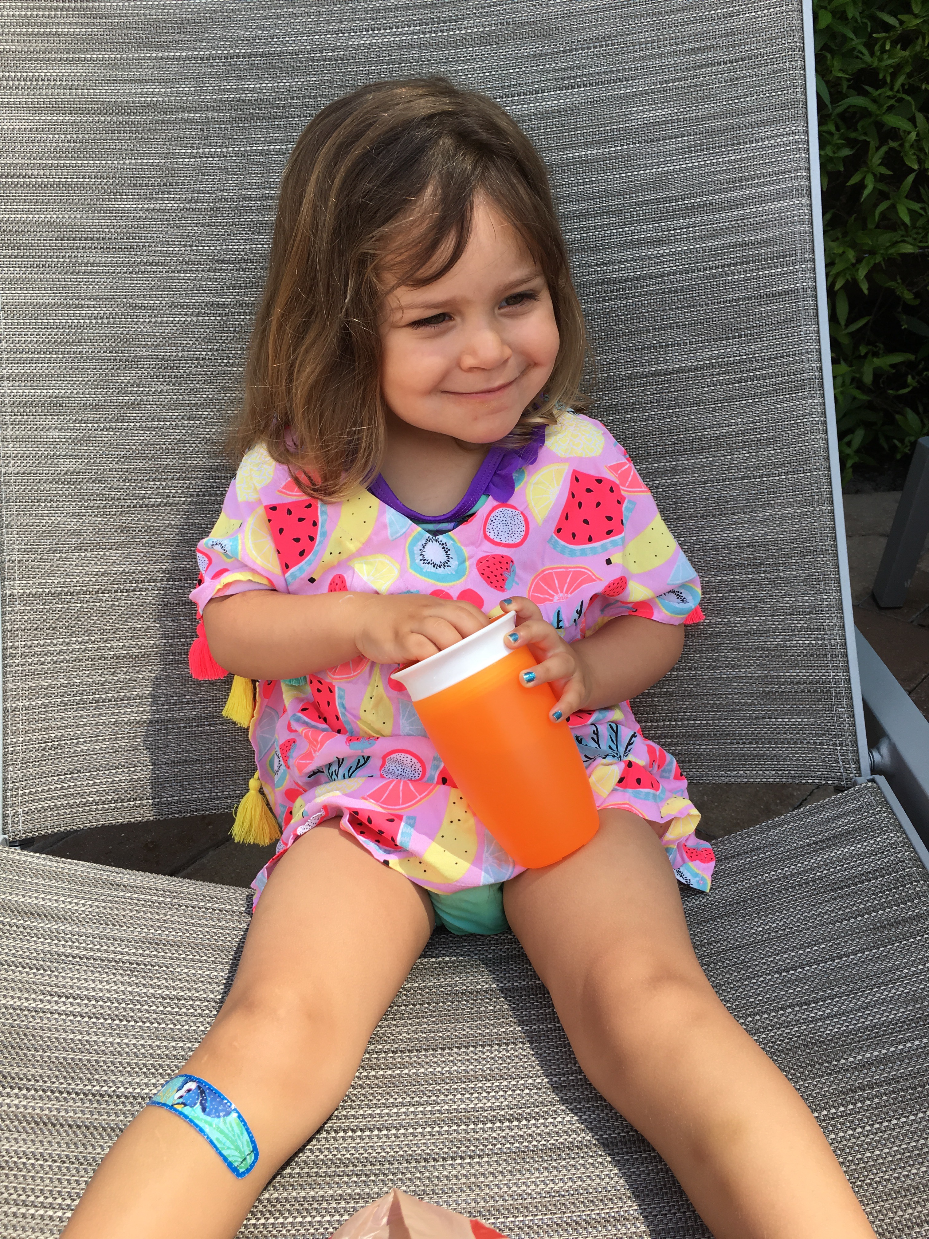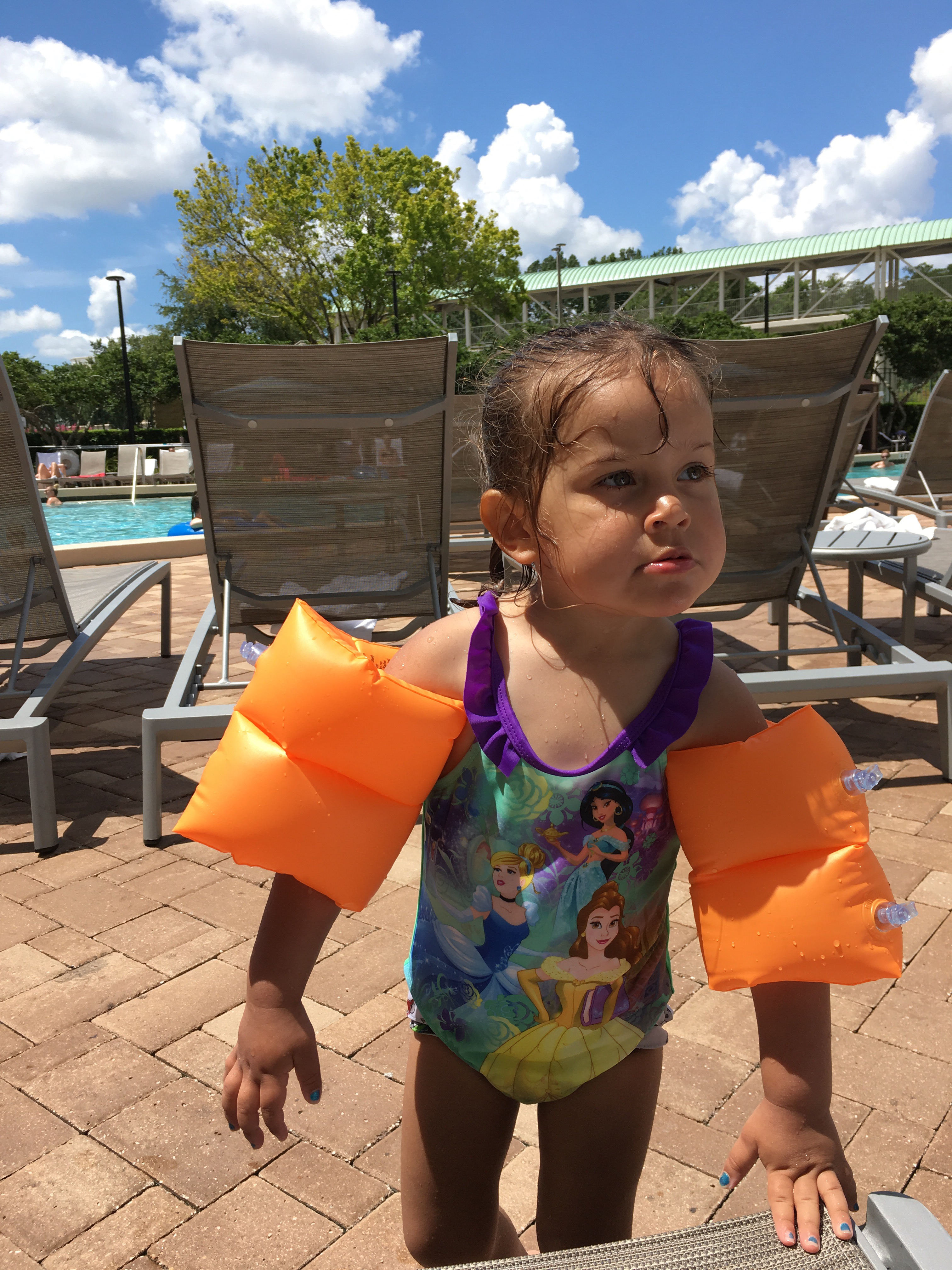 While BB loves to swim this time around she didn’t seem super into actually swimming she was super timid but wanted her space. I quickly decided we needed to get her floaties. They changed her world. She was a swimming machine after that.
