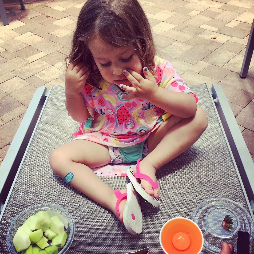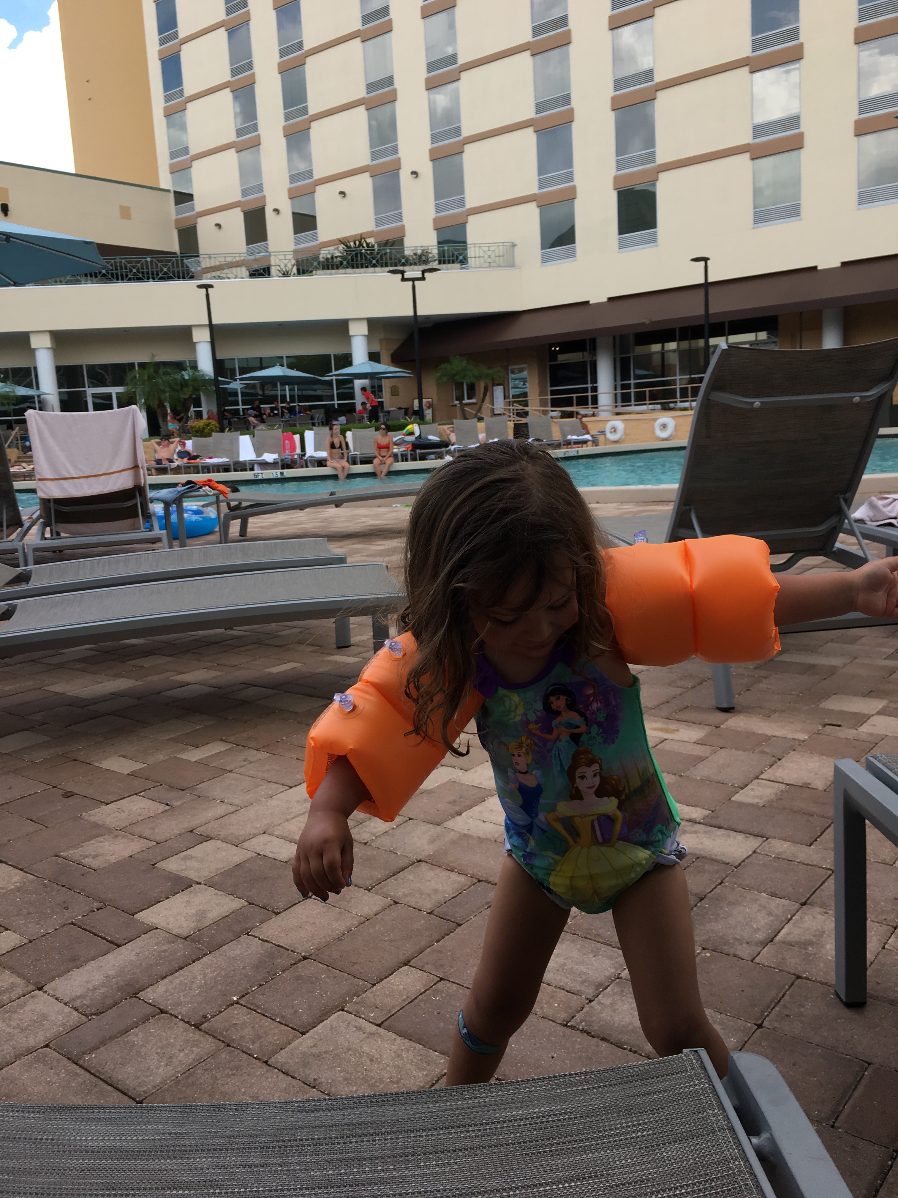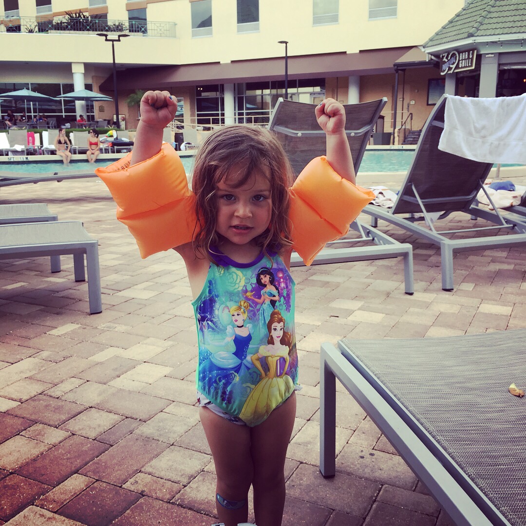 While BB loves to swim this time around she didn’t seem super into actually swimming she was super timid but wanted her space. I quickly decided we needed to get her floaties. They changed her world. She was a swimming machine after that.