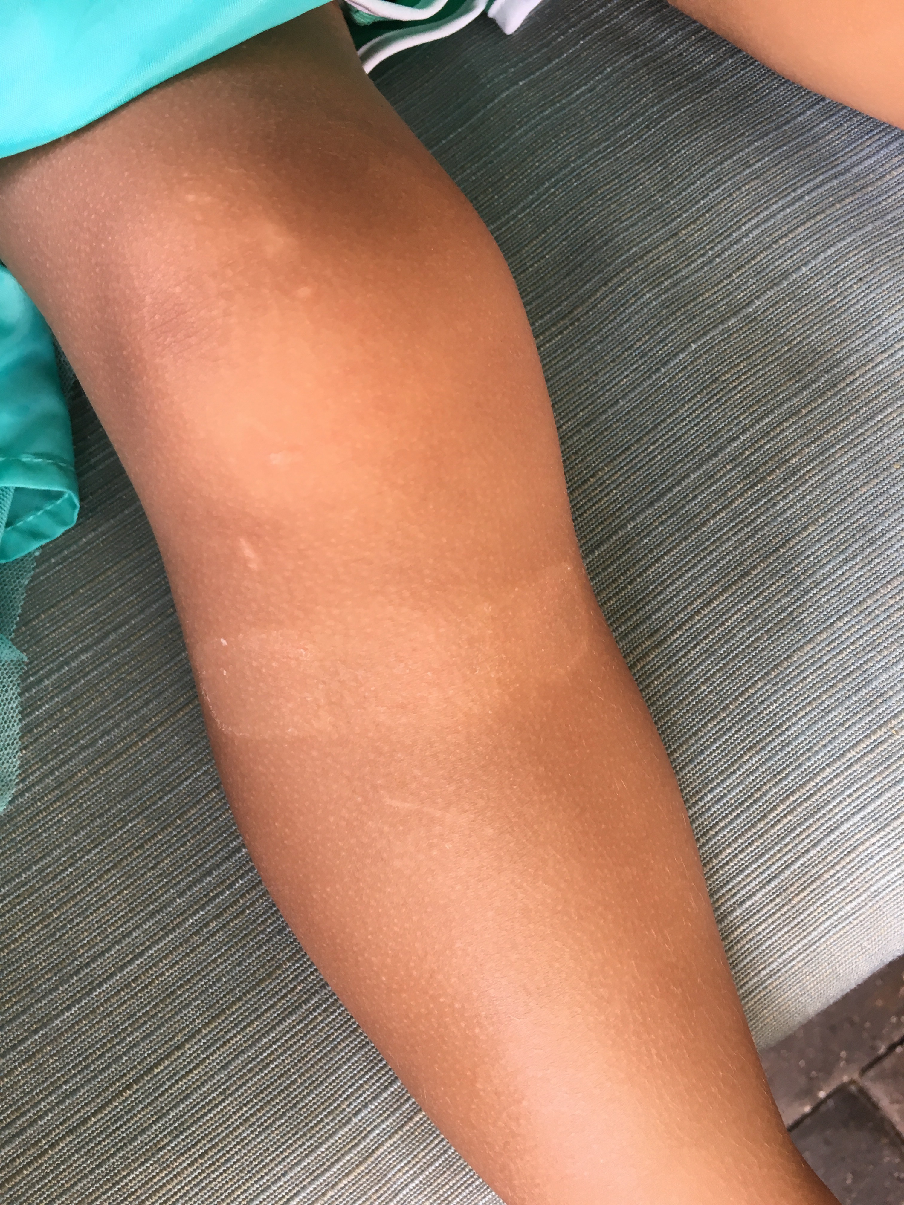 Tan lines day 1, she got so much tanner over the course of our trip!