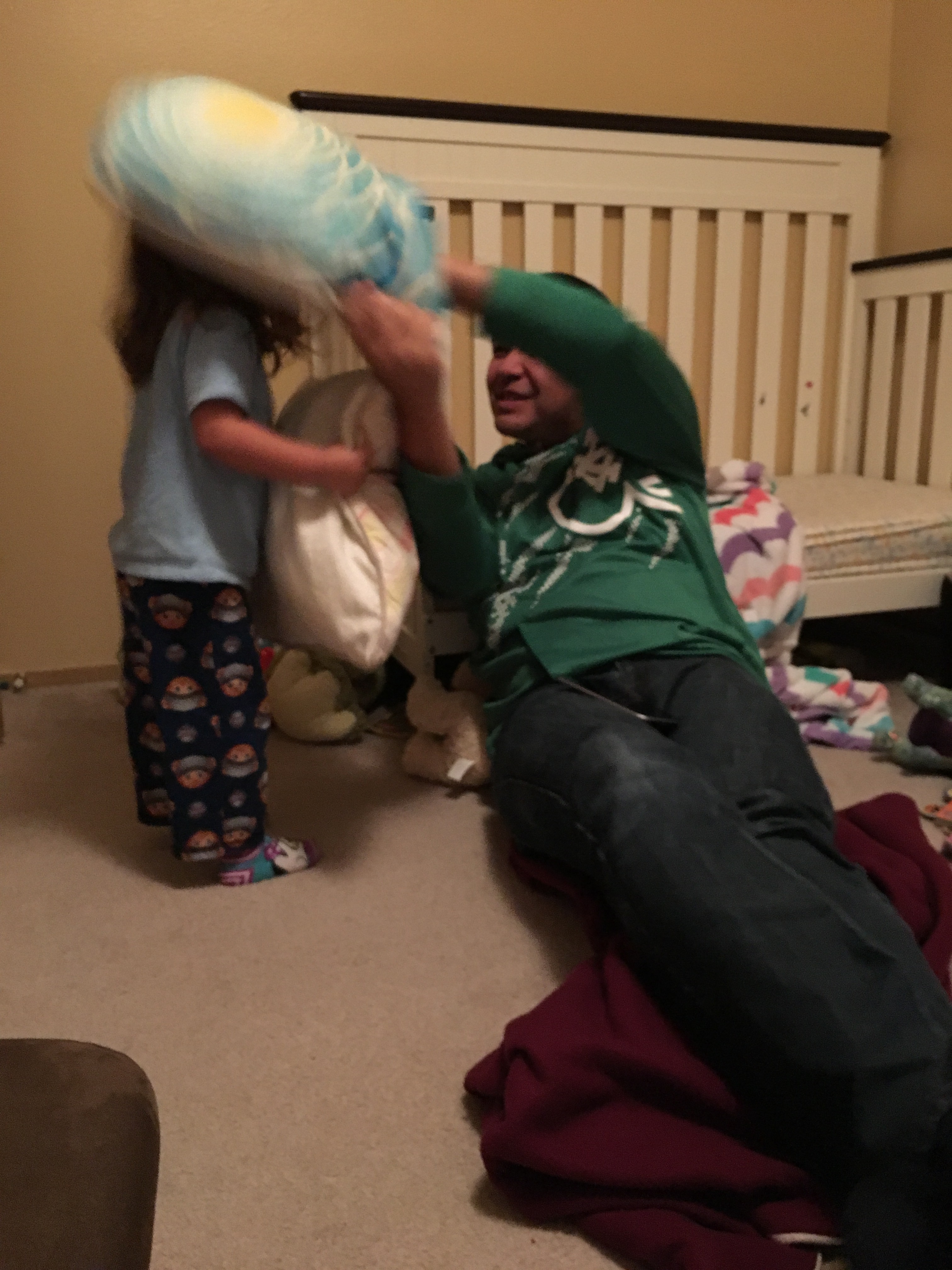 Once again walking in on a pillow fight when they are supposed to be getting ready for bed… these two are trouble!!
