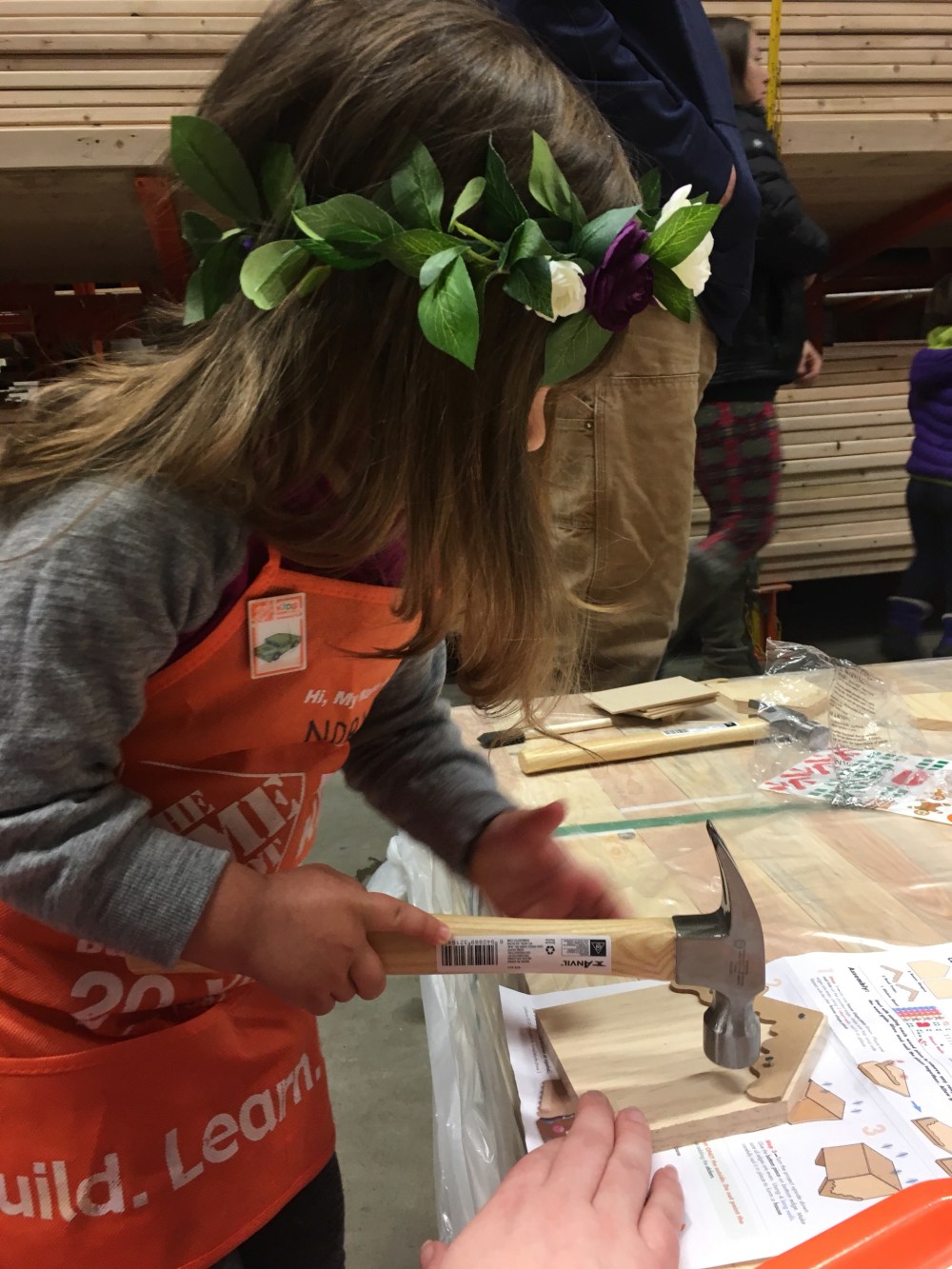 BB insisted on wearing her flower crown basically everywhere we went after we made them. My favorite place was when we went to home depot to do the kids build day and she was wearing her orange apron and flower crown. I love doing the kids build days with BB. She always surprises me with how much she can do and her determination. I absolutely love these memories and skills we are building together! This was our last one just the two of us… Baby better be here by the next one!