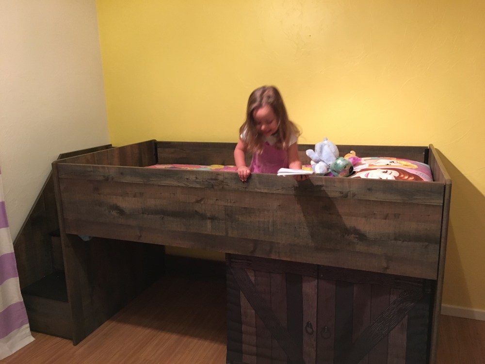 BB got a new bed for her birthday and it finally came in. It is really cool and she really likes it! It is crazy to think she is big enough to have a kid bed. When did this happen?