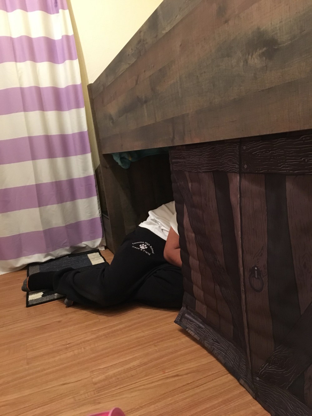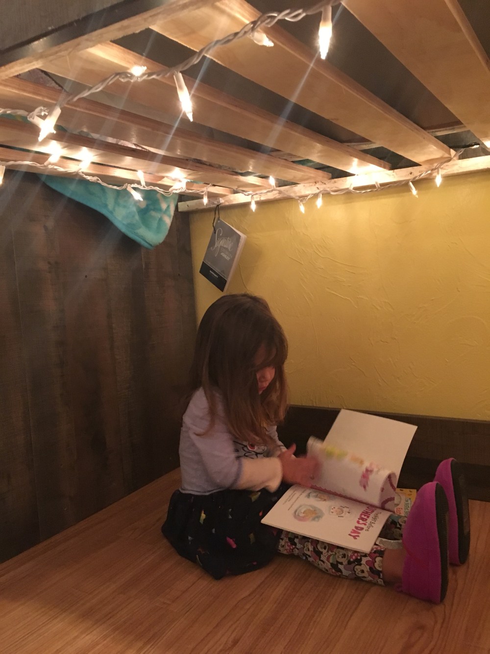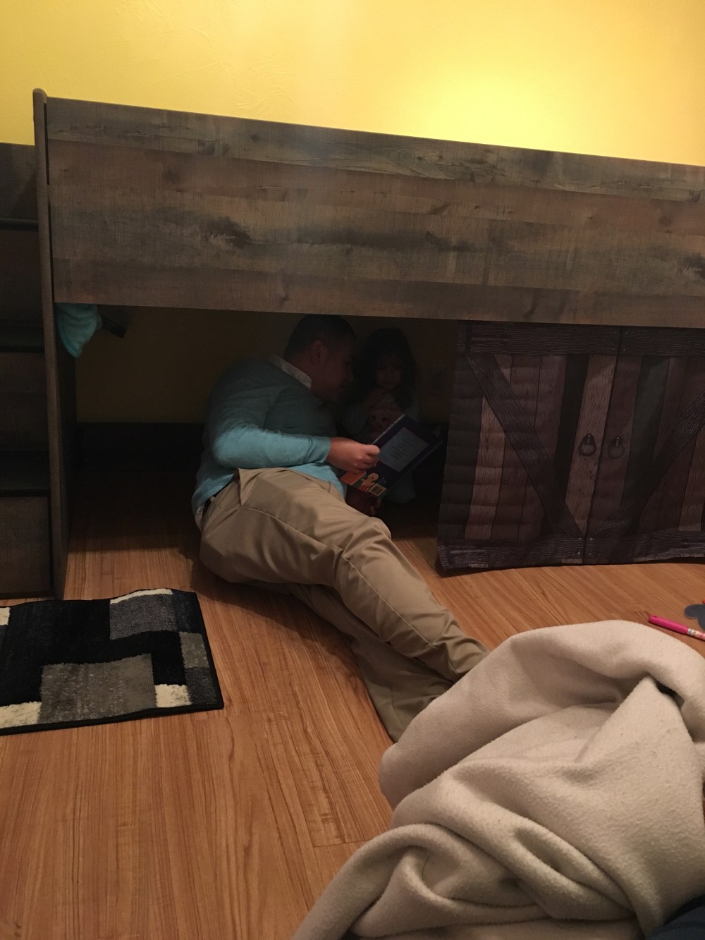 There is a little cave underneath and while I cannot easily get under there D and BB go under and read books every night. It’s really sweet to watch them have their own secret time!