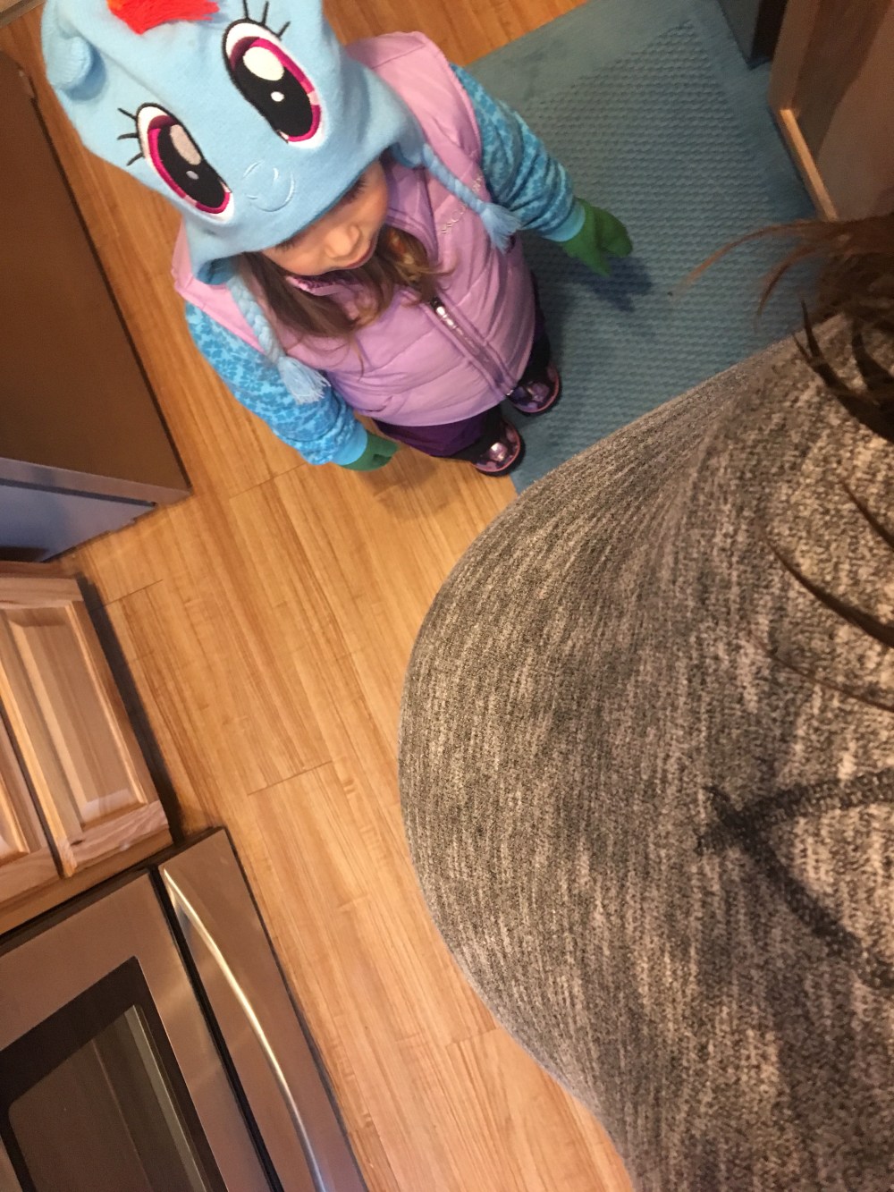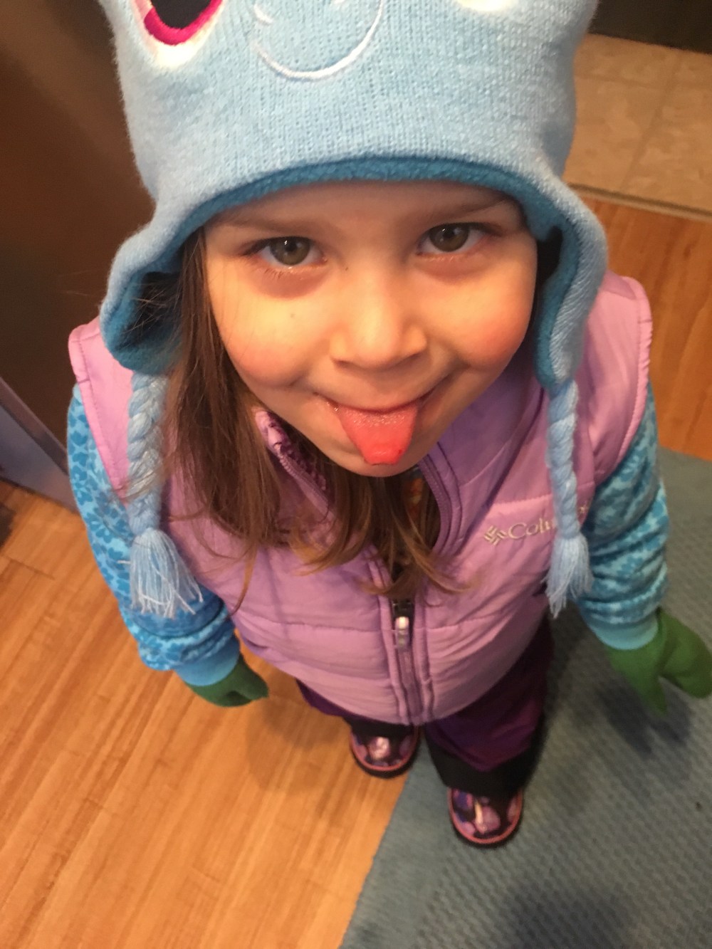 This is what happens when it’s freezing cold out and your toddler begs to play outside. We watched her the whole time… except when she got her tongue stuck on the fence and proceeded to pull it off.