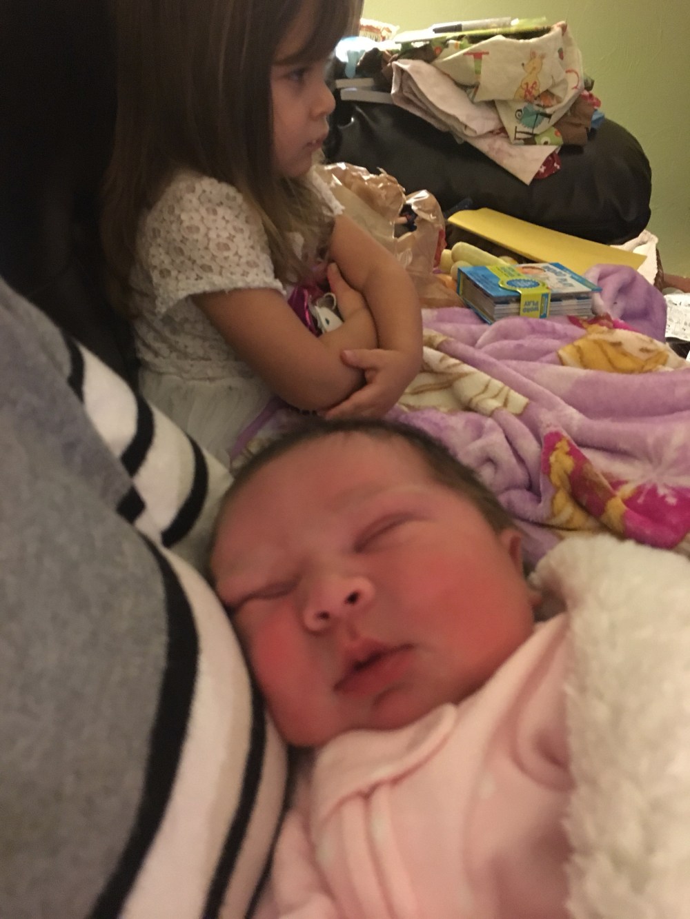 Happy New years! Little did BB know she was going to have an interesting night, and spend the night with Nana and Tata at their hotel and when she got home in the morning there was a crying baby at home! The last day as an only child!