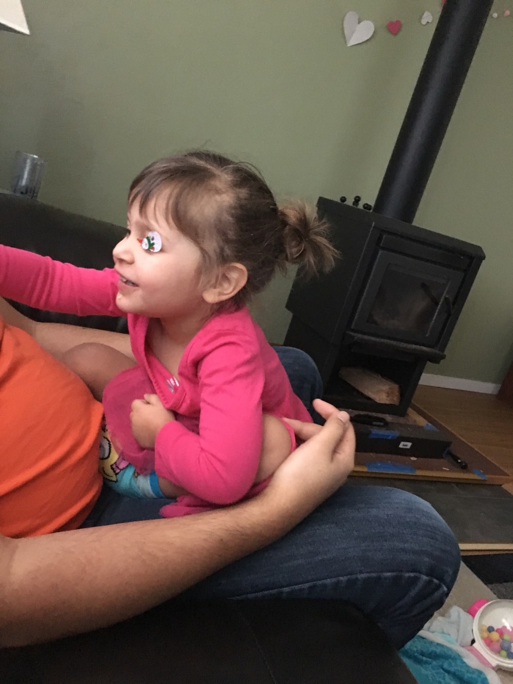 BB put the sticker she got from dance on her eye and was running around being a pirate. It was so funny to watch her.