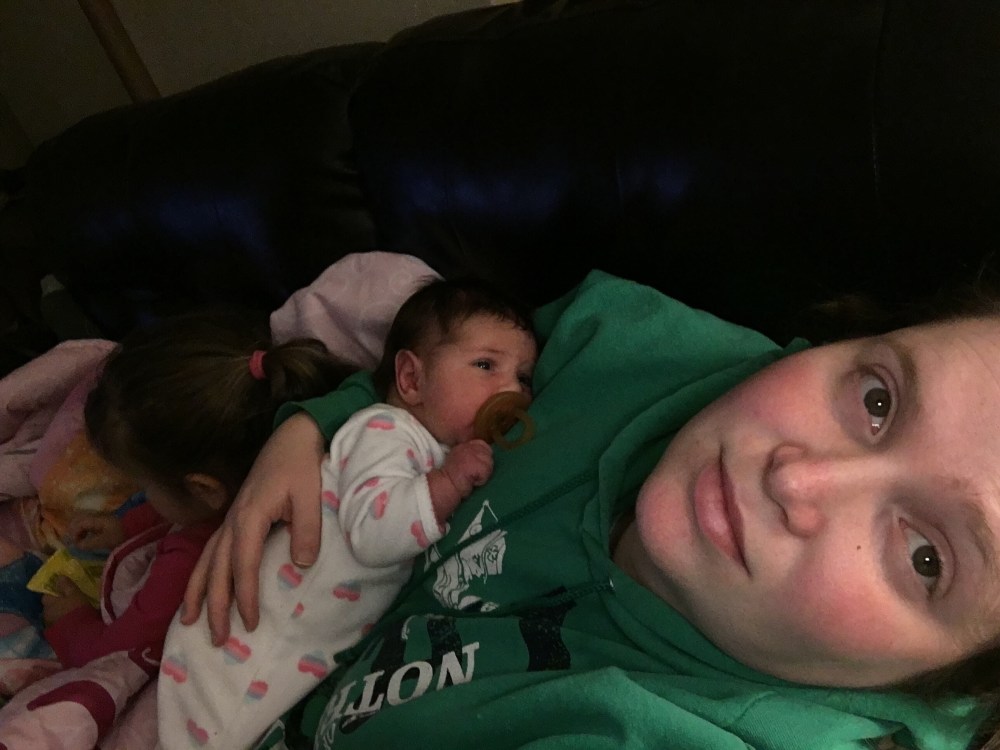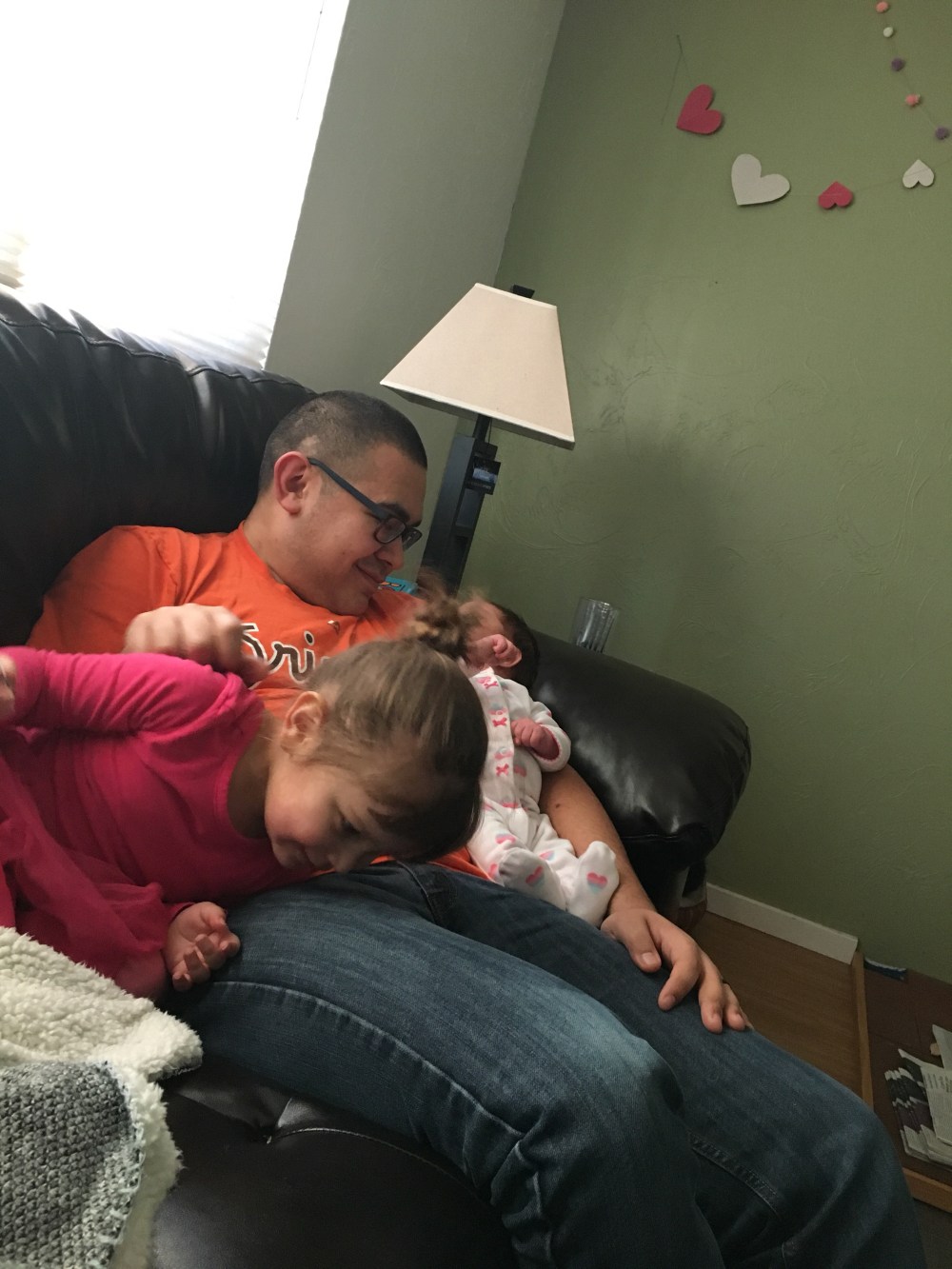 I planned this evening to lay on our small couch by myself or with the baby. BB decided that she also wanted to come lay with me… on the small couch and D ended up sitting on the floor… I just kept shaking my head that we were all on a tiny couch or the floor.