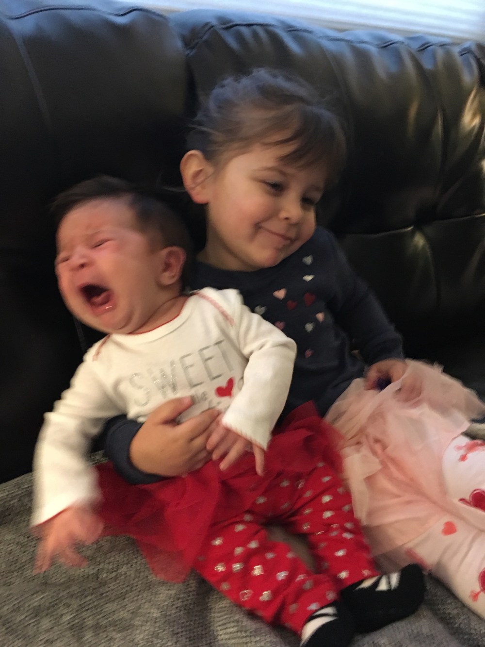 The reality of taking photos with your big sister, this was after we corrected the choke hold she had on her